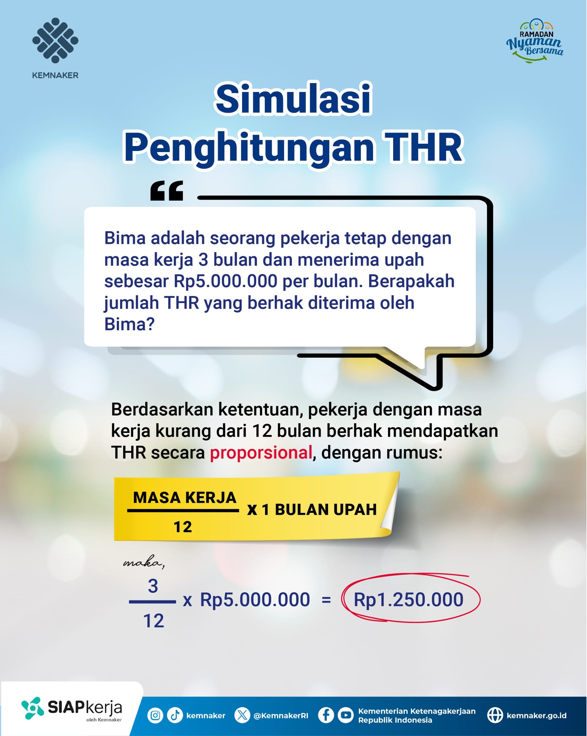 For example, a worker who has been employed for three months and earns Rp5,000,000 per month would receive Rp1,250,000 as THR.