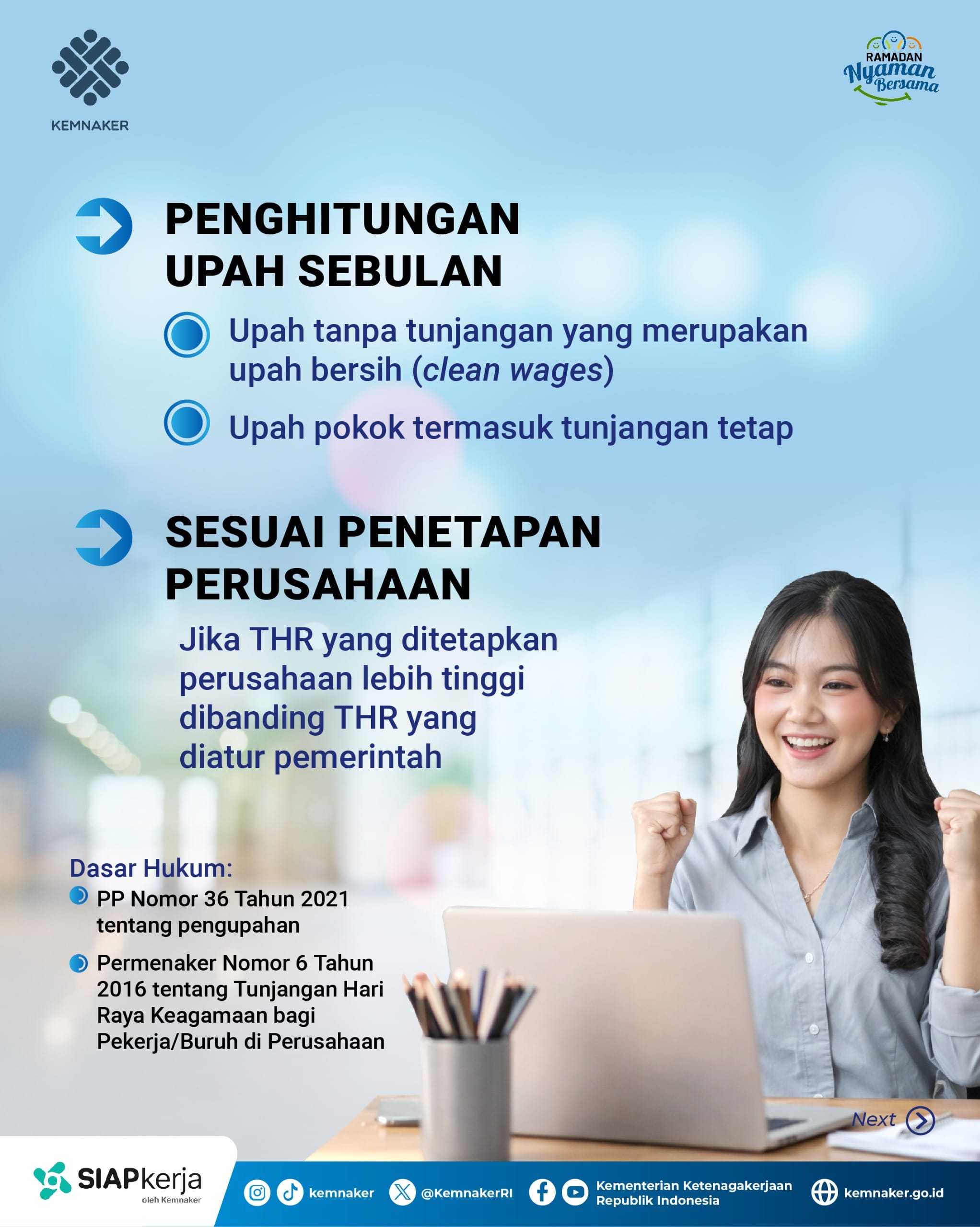The government notes that the monthly wage used for calculation can be either net wages without allowances or basic salary including fixed allowances, depending on the company’s compensation structure. Employers may also provide a higher THR than the minimum mandated by the government.