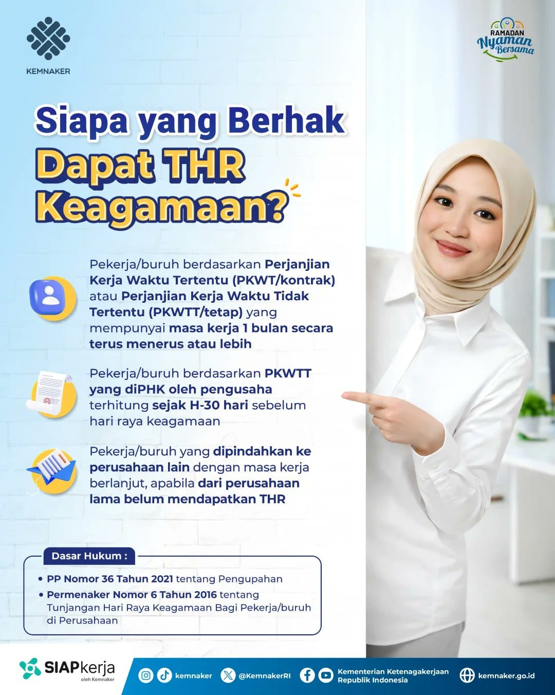 The guidance follows a government circular outlining the implementation of the 2026 THR and the Eid al-Fitr Bonus (BHR), including provisions for platform-based workers such as online drivers and couriers. Authorities say the policy is intended to strengthen worker protection while recognising the contribution of employees across different forms of employment.