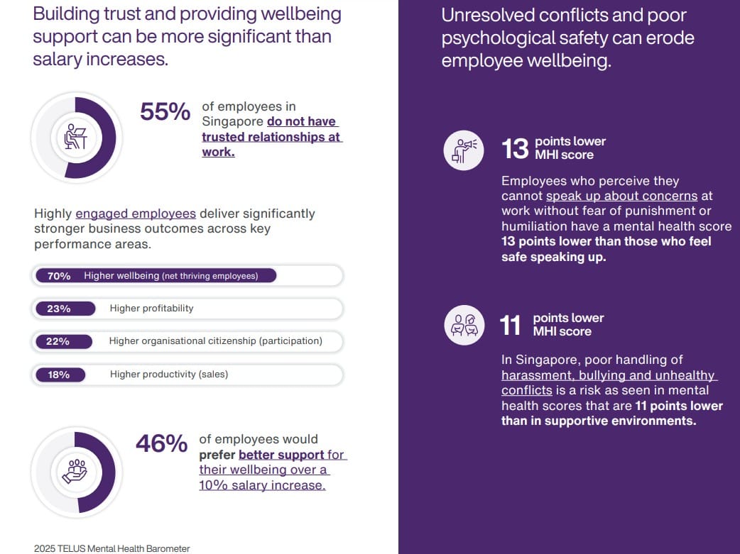 A positive and supportive workplace gains popularity as 46% of Singapore workers ask for better well-being support over a 10% salary hike.