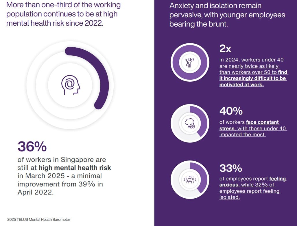 The study surveyed 1,000 employees across Singapore, and found that while one in three workers still feels anxious or experiences mental health challenges that impact productivity, the overall trend is positive.